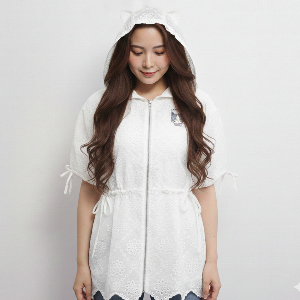 【刺繍ローン 猫耳フード パーカー】