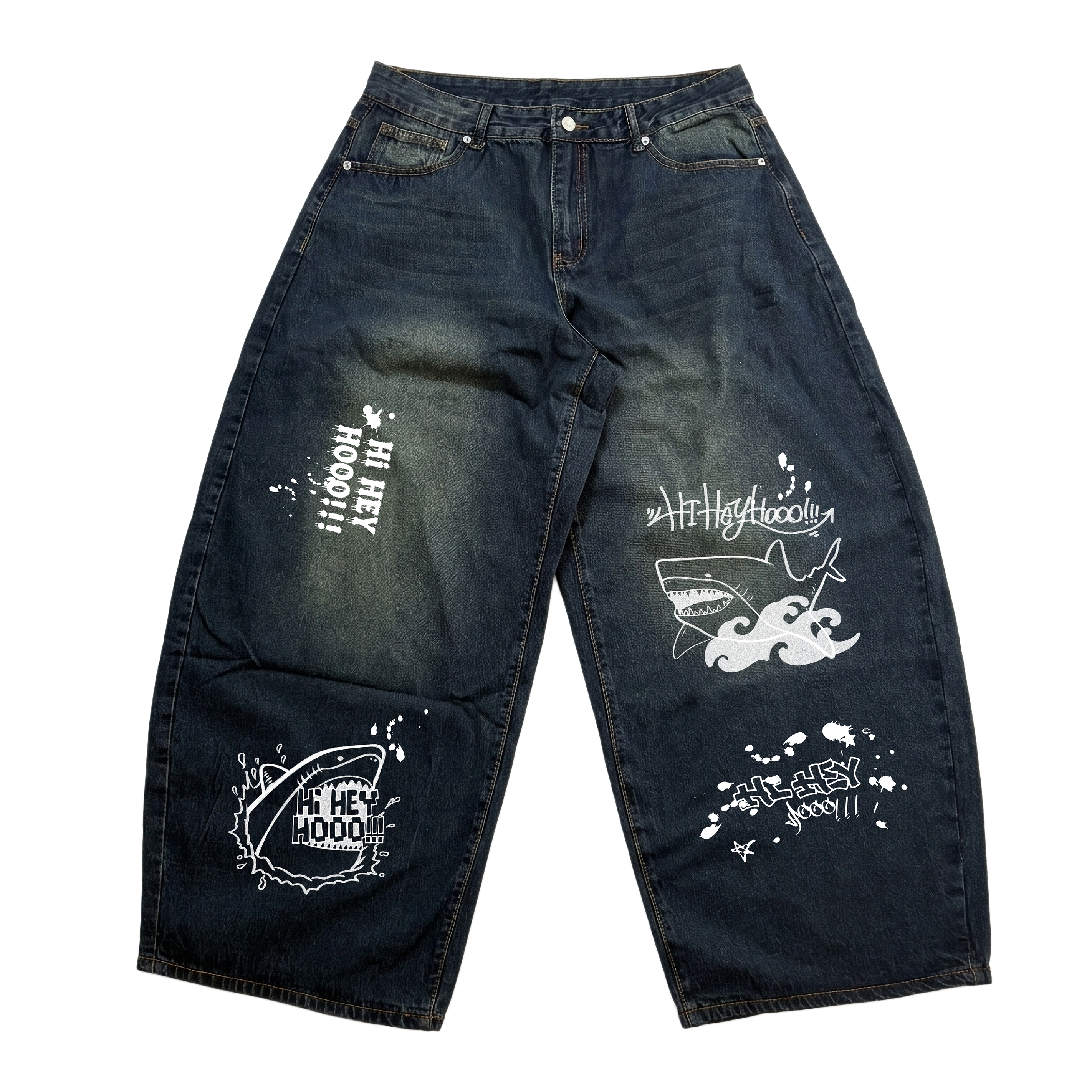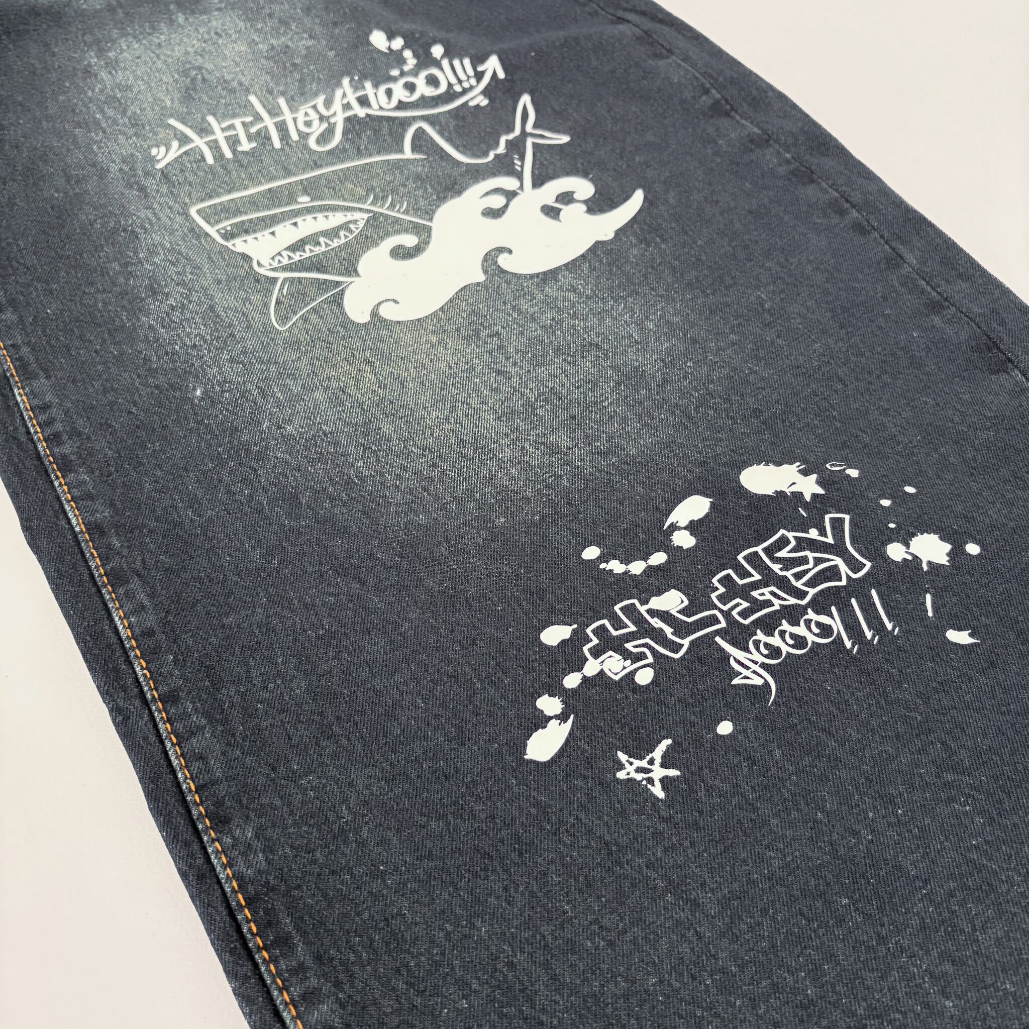 ストリートで映える!大胆ペイントのシャークデニム