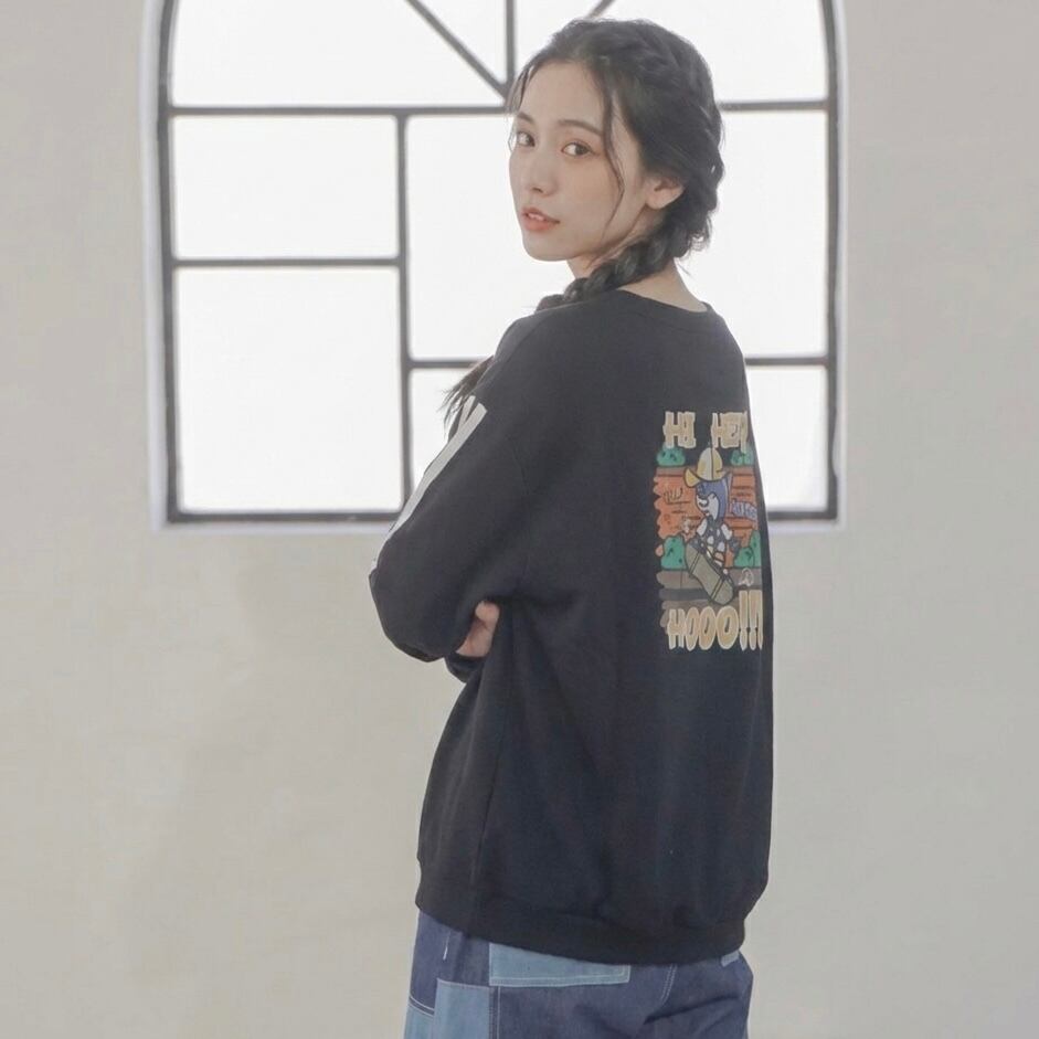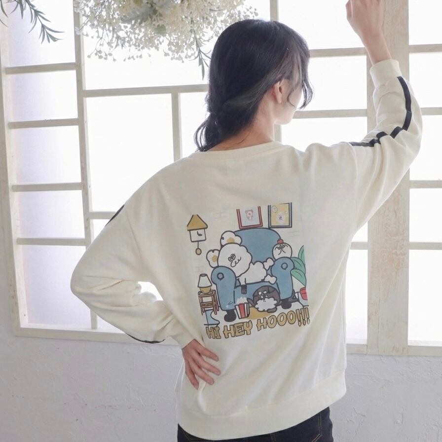 【無言のあいさつ。】「カッコかわいいですね」で繋がる袖ライン入りプリント スウェット/Sleeve Stripe Print Sweatshirt (Cool & Cute Statement Piece)