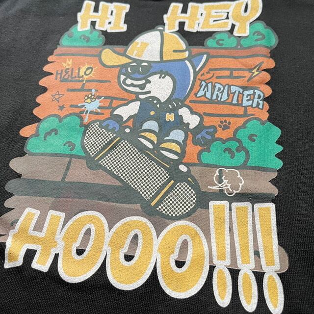 胸元にはさりげなく、背中には大胆なイラストプリント!