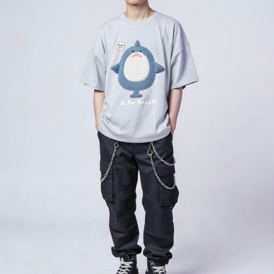 ・ おでかけコーデの主役に! 「そのTシャツ、サメついてるの!?」と注目の的!
